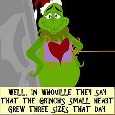 Speaking of the Whos in Whoville: don’t you Christmas haters remember when the Grinch’s heart grew three sizes when he finally understood the true meaning of Christmas?